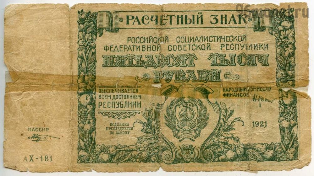 50.000 рублей 1921 АХ Крестинский-Козлов