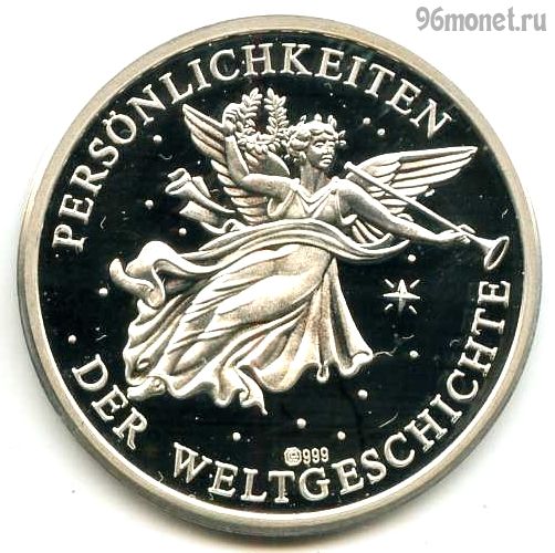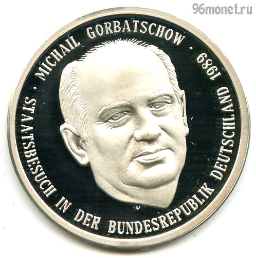 Из серии "Личности мировой истории": Михаил Горбачев - государственный визит в Федеративную Республику Германия в 1989 г. Серебро 999 пробы, 8,5 г, диаметр 30 мм. ПРУФ, капсула.