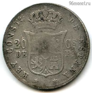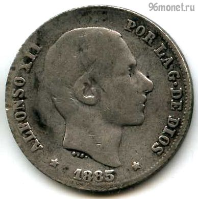 Испанская колония (1861-97 гг). Серебро 835 пробы, 5,19 г, диаметр 23 мм.