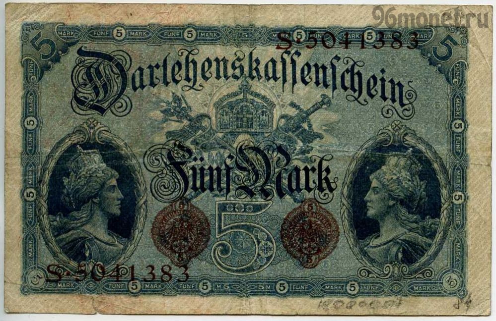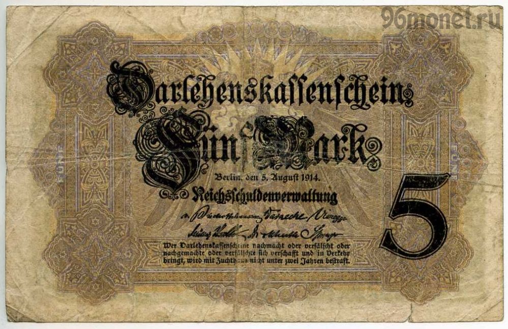 «Darlehenskassenscheine» — банкноты, выпущенные в период с 1914 по 1922 год Управлением государственного долга. Были в обращении до гиперинфляции 1923 года. Банкноты не были законным платежным средством, однако их должны были принимать все государственные казначейства. Широко использовались в качестве параллельной валюты по отношению к золотой марке. Из обращения.