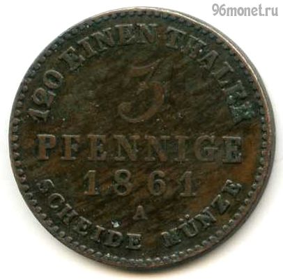 Ангальт-Бернбург — немецкое княжество с резиденцией в Бернбурге. Существовало в 1252—1468 и 1603—1863 гг. Принадлежало роду Асканиев. Образовано путем деления княжества Ангальт на три княжества: Ангальт-Ашерслебен, Ангальт-Бернбург и Ангальт-Цербст. 3 пфеннига = 1/120 талера. Серебро 520 пробы, 5,34 г, диаметр 23 мм.