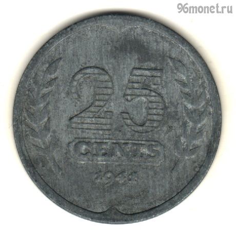 Вы здесь: Главная > Каталог товаров > Монеты > Нидерланды 25 центов 1941