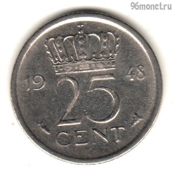 Вы здесь: Главная > Каталог товаров > Монеты > Нидерланды 25 центов 1948