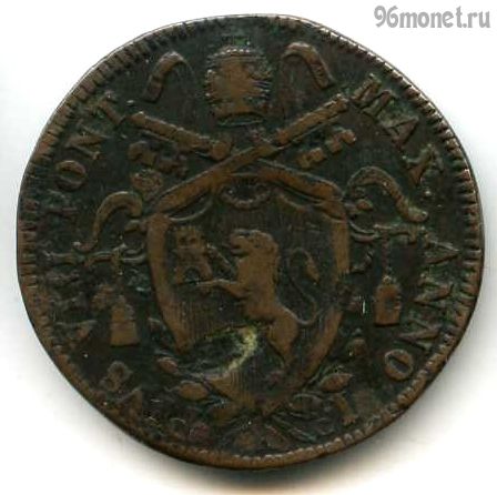 Папская область (752—1870) — теократическое государство, существовавшее в Центральной Италии и возглавлявшееся папой римским. Папский скудо — денежная единица Папской области, имевшая хождение до 1866 года. 1 папский скудо = 100 байокко, 1 байокко = 5 кваттрино. Медь, диаметр 27 мм. Папа Пий VIII. Год 1. Монетный двор - Рим (Италия) "R".