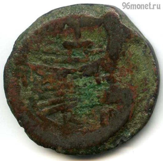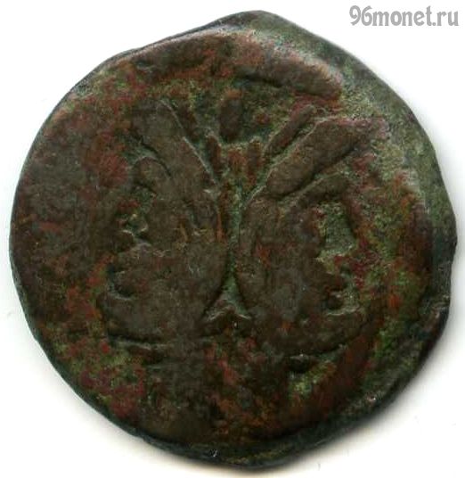 Римская республика (509-27 до н.э.) - историческая эпоха Древнего Рима между царством и империей. Денарий = 16 ассов, были в обращении в 141-27 годах до н.э. Аверс - двуликий Янус, сверху I, реверс - нос галеры (прора), сверху I, снизу ROMA. Бронза, диаметр 32 мм.