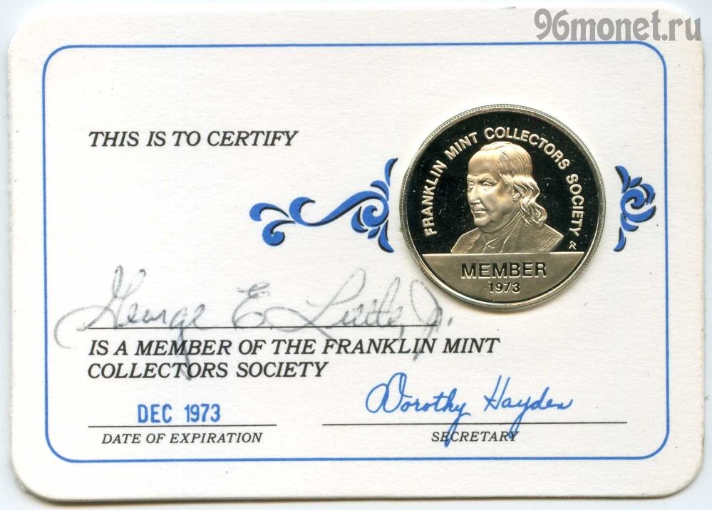 Вы здесь: Главная > Каталог товаров > Жетоны > США. Членский жетон Франклин минт 1973