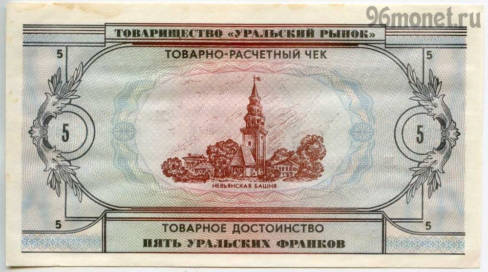 Описание Уральские франки 5 франков 1991