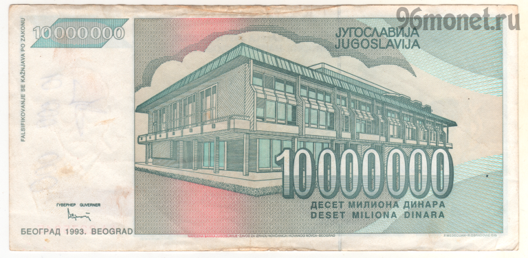 Вы здесь: Главная > Каталог товаров > Боны > Югославия 10.000.000 динаров 1993